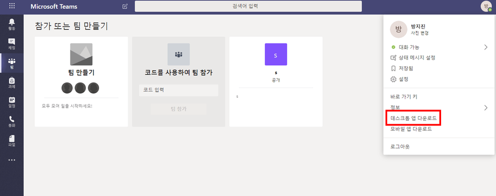 [오른쪽 상단 프로필] - [데스크톱 앱 다운로드]