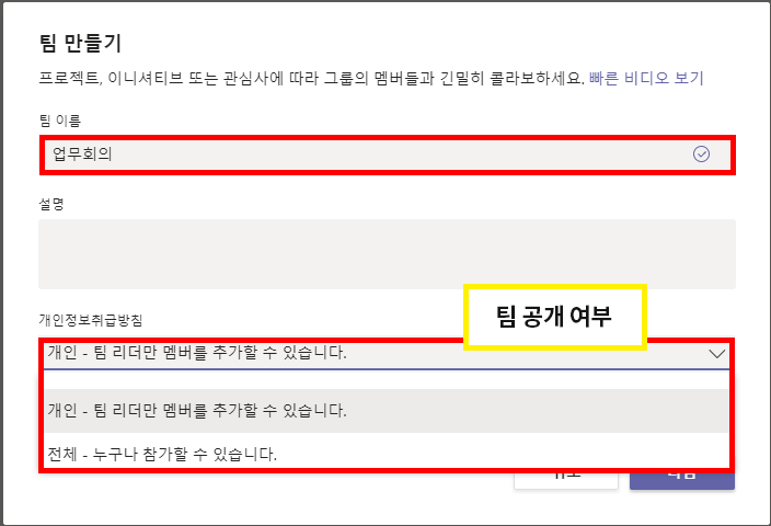 - 팀 만들기