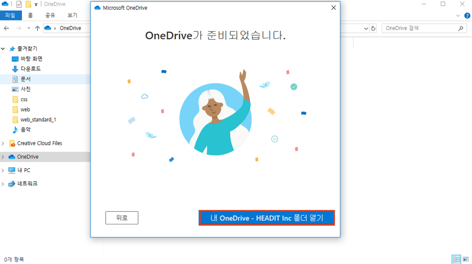 ④ 설치가 완료되었으면, 내 OneDrive 폴더 열기 버튼을 클릭합니다.