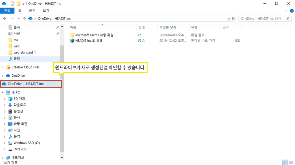 ⑤ 내 PC에서 원 드라이브(OneDrive)가 생성된 것을 확인할 수 있습니다.